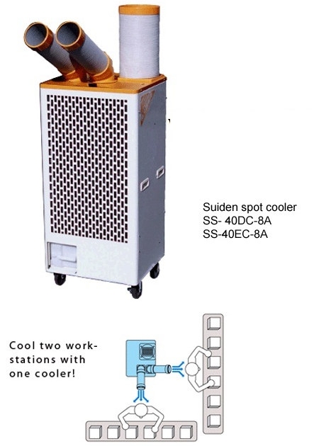 ĐIỀU HOÀ DI ĐỘNG CÔNG NGHIỆP Suiden SS-40EC-8A Máy làm lạnh điểm phổ biến dùng cho các nhà xưởng sản xuất, xưởng cơ khí, xưởng đúc, kho chứa hàng lớn..... Những nơi có độ nóng cao .