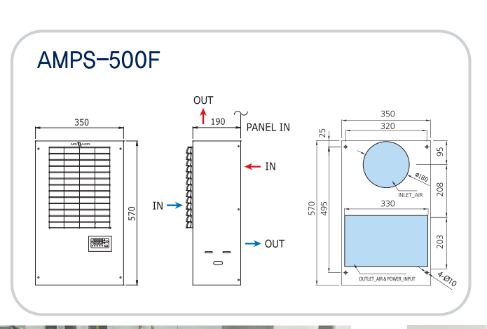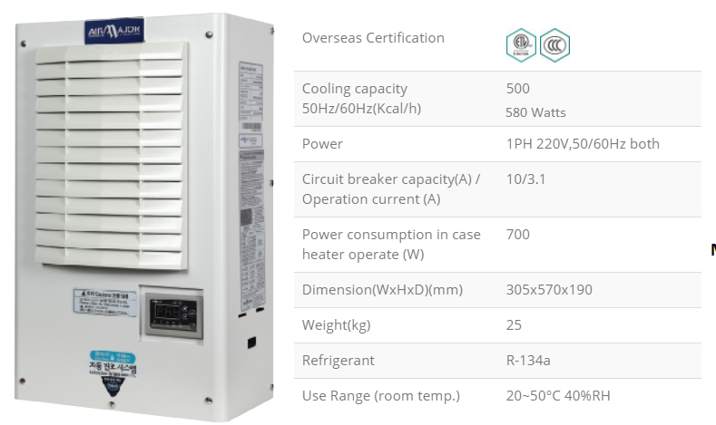Điều hòa làm mát tủ điện - Máy làm mát tủ điện Airmajor Kura Model AMPS-500F là model được dùng phổ biến nhất để làm mát cho tủ điện, tủ điều khiển trong máy CNC, tủ biến tần nhỏ.